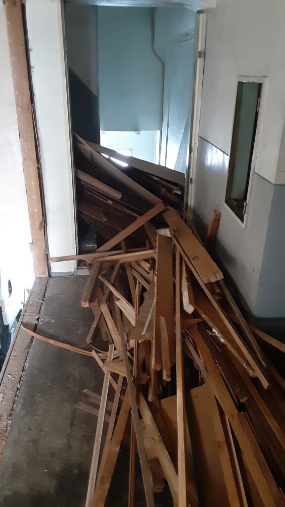 本日は、2階の内装を解体し、木材の搬出作業です。